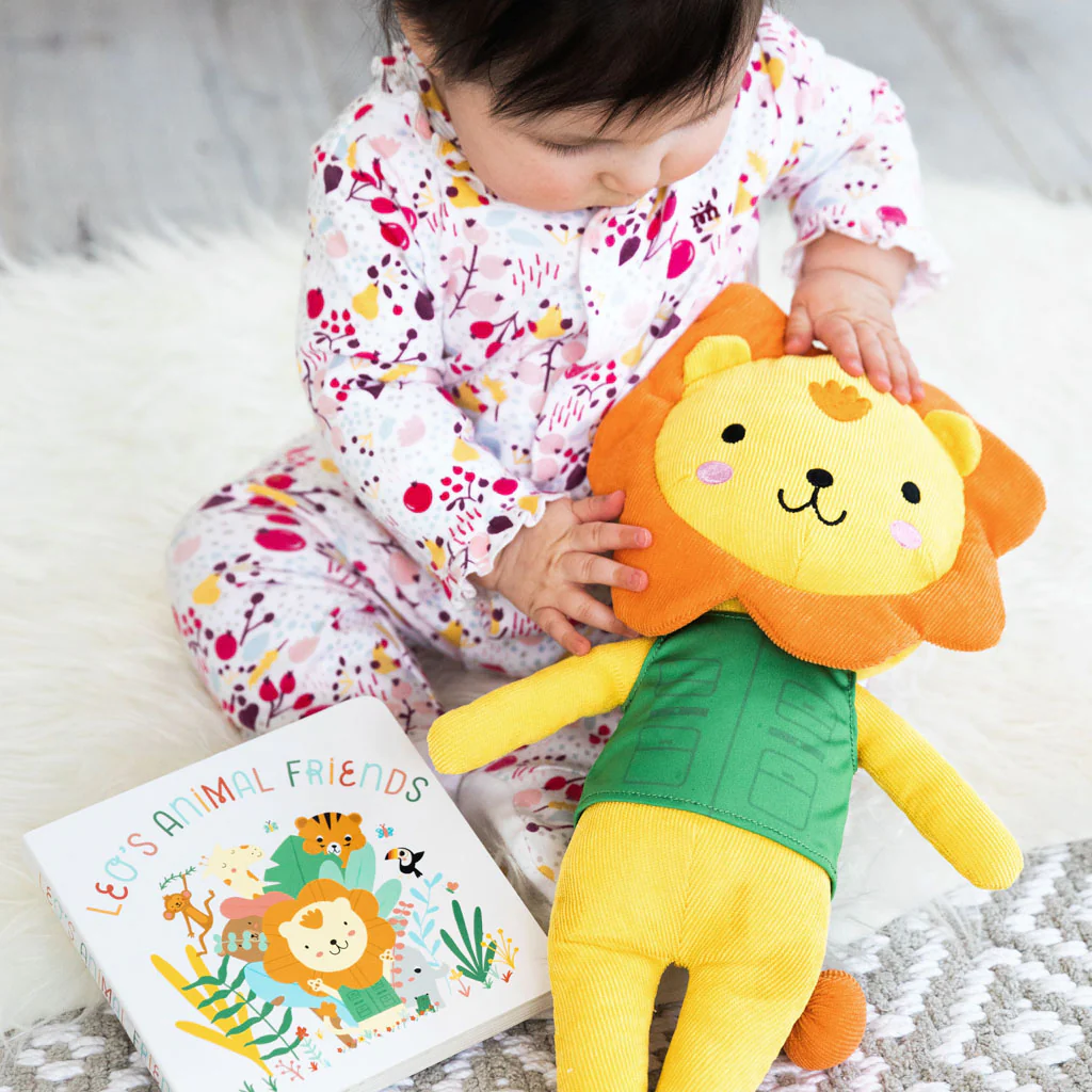 · Your little one will love cuddling up with Leo the Lion while reading about all his animal first with this board book and stuffed animal set!